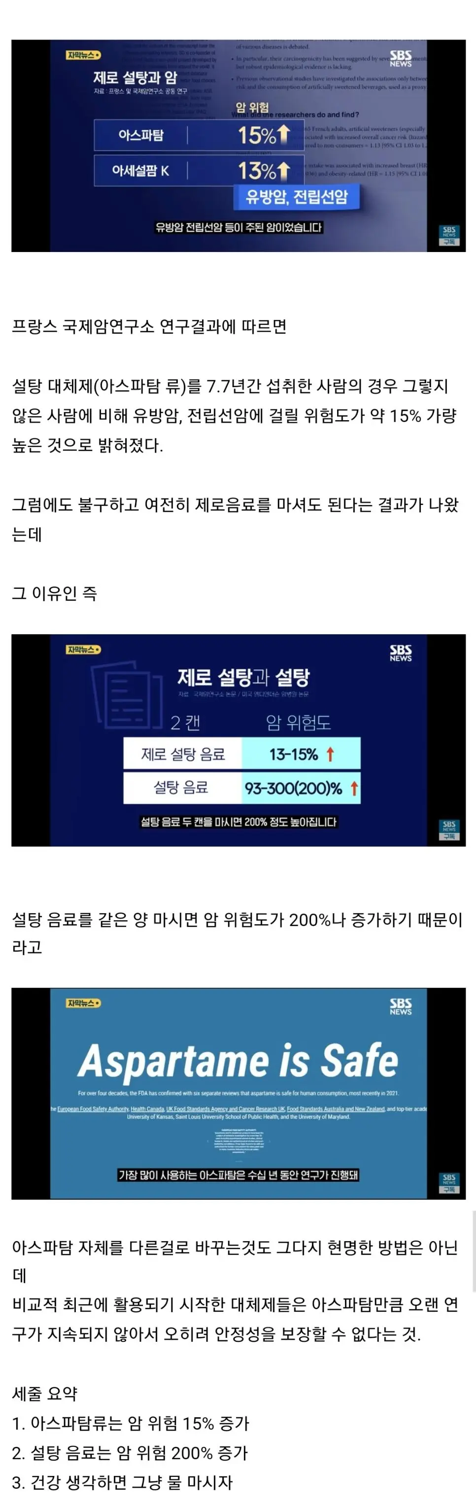 제로콜라 암 발병률 15% 증가 충격ㄷㄷㄷ