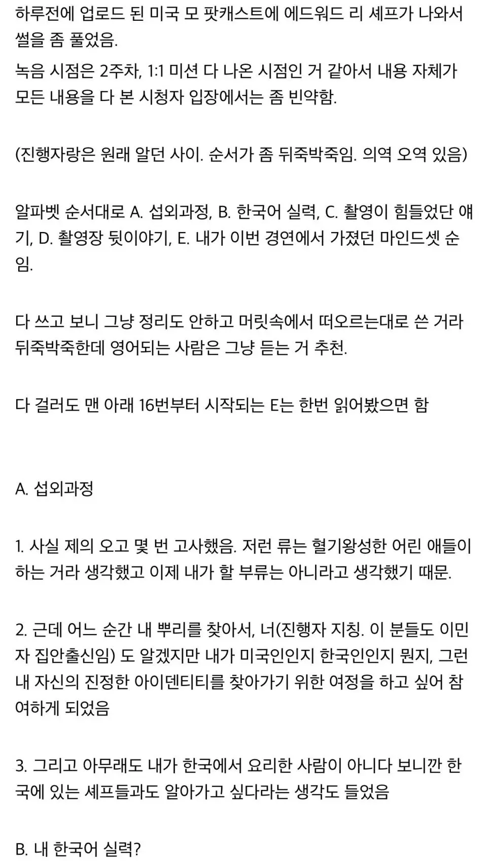 흑백요리사) 에드워드 리 흑백요리사 비하인드 썰